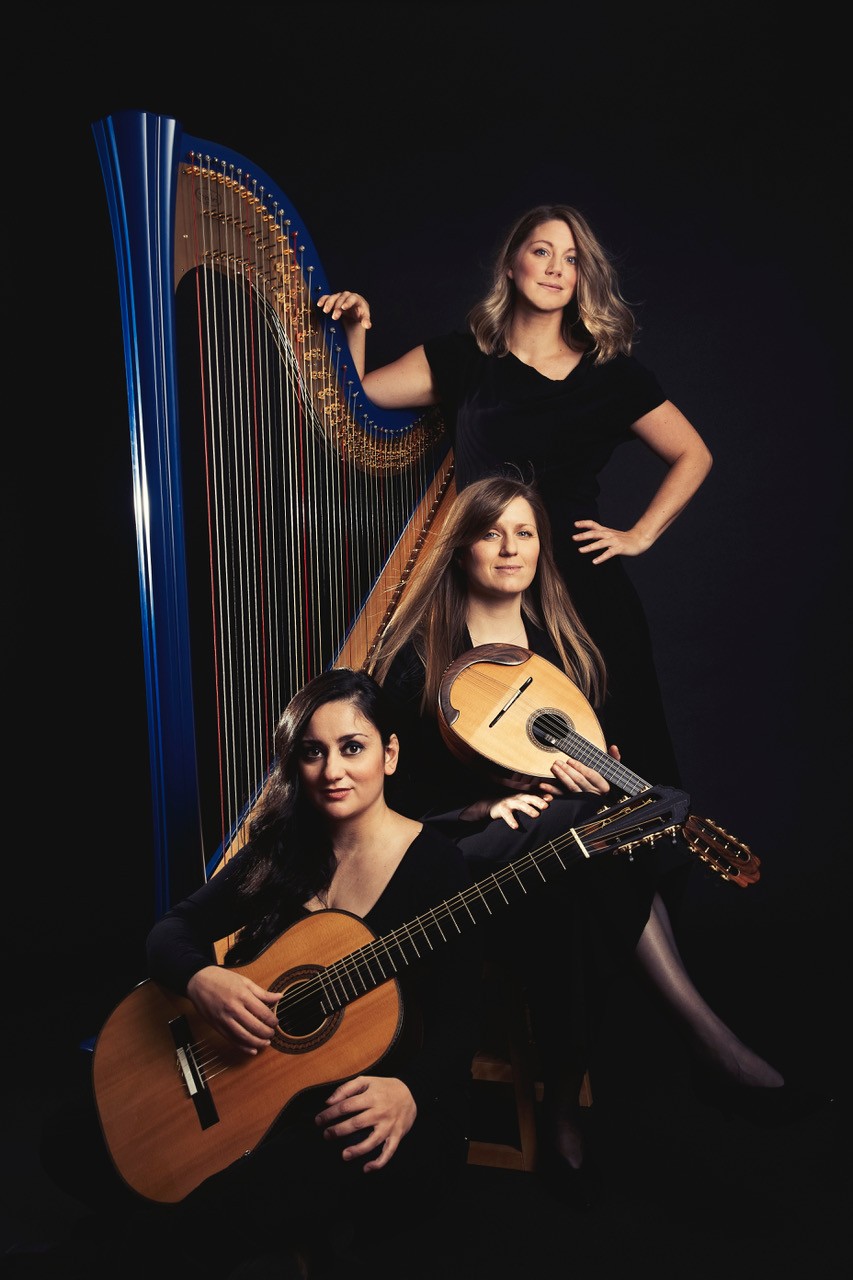 Eine außergewöhnliche Besetzung: Mandoline, Gitarre, Harfe – 61 Saiten – drei Musikerinnen! Nicht mehr und nicht weniger braucht es, um eine neue musikalische Welt zu erschließen.